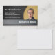 Un carte de visite noir grisâtre foncé moderne, professionnel et chic avec la personnalisation de photo qui donne un sens de la crédibilité et la connexion personnelle avec les clients potentiels. Ce carte de visite est plus adapté pour des professionnels dans les industries des immobiliers et des services financiers. Par exemple agents immobiliers, vrais agents immobiliers, agents d'assurance. Le verso est laissé vide de sorte qu'on puisse prendre notes toutes les coordonnées des clients. Personnalisez facilement avec votre photo des pixels de la proportion 1000 à 1000 pixels. Alternativement, vous pouvez ajuster et classer votre photo en mode de personnalisation. L'image d'échantillon est fournie par Olga Vasilkova et n'est pas de faire partie du produit fini signifié en vente. Elle sert de buts illustratifs seulement.