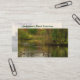Ce carte de visite fait la publicité d'une société de services d'étangs qui effectue la planification, la conception, la construction, l'entretien, le nettoyage et la gestion des étangs. Il présente une scène de paix et de sérénité. Les oies et les canards nagent tandis que les arbres dans le feuillage d'automne complet et le ciel lumineux se reflètent dans l'eau de cet étang bien construit. Tout le texte peut être customisé en fonction de votre situation.