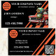 Carte de visite avec un design accrocheur en noir et orange avec voiture et robot. La voiture et le robot sont des fichiers séparés et peuvent être supprimés si vous n'en avez pas besoin. Un modèle de logo ainsi qu'un modèle de code QR facile à customiser sont ajoutés. Idéal pour un mécanicien automobile professionnel.