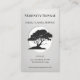 Une silhouette d'un arbre patiné sculpté par le vent dans un découpage blanc et circulaire sur un arrière - plan gris fait le carte de visite parfait pour une entreprise de bonsaï. Peut également être utilisé pour un artiste ou une entreprise paysagère.