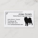 Un design carte de visite simple en noir et blanc avec une silhouette d'un Samoyed avec un motif géométrique dans le coin.