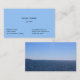 Carte de visite simple, bleu clair, avec une photographie de la mer de plage à l'arrière.