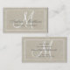 Carte De Visite Simple clair chic lin beige texo Monogramme