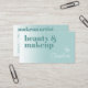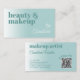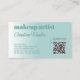 Magnifique carte de visite de maquillage artistique de style élégant et minimaliste. Carte de visite contemporaine de couleur bleu marine clair avec un moderne rétro et minimaliste vert turquoise et une police blanche classe sophistiquée. Cliquez sur "Personnaliser" pour trouver le modèle prêt à être customisé avec votre nom d'entreprise unique, votre profession et vos coordonnées, le texte et le code QR de votre choix. Ce design particulier et unique a été fait pour ceux qui aiment les conceptions fortes classiques sophistiquées.
