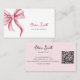 Carte De Visite Simple Elegant Typography Pink Bow QR Code