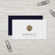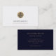 Laissez-vous tenter par ces cartes de visite de haute qualité qui arborent un emblème or frappant des échelles de justice avec votre nom et votre slogan. Cette conception recto verso présente un dos bleu marine riche avec espace pour un nom individuel, titre et coordonnées dans la typographie classique dorée. Idéal pour les avocats et les services juridiques de réseauter et de présenter leur identité professionnelle.