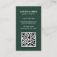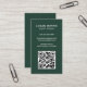 Carte de visite vertical moderne avec un style simple et minimaliste avec votre QR Code sur le devant et les icônes de médias sociaux sur le dos. Tous les éléments de conception sont en blanc sur un arrière - plan vert de forêt. Un design simple et minimal qui peut être customisé pour n'importe quel professionnel d'affaires.