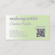 Magnifique carte de visite de maquillage artistique de style élégant et minimaliste. Carte de visite moderne couleur chaux d'été clair avec un moderne rétro et minimaliste lavande violet et une police blanche chic sophistiquée. Cliquez sur "Personnaliser" pour trouver le modèle prêt à être customisé avec votre nom d'entreprise unique, votre profession et vos coordonnées, le texte et le code QR de votre choix. Ce design particulier et unique a été fait pour ceux qui aiment les conceptions fortes classiques sophistiquées.
