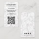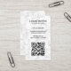 Carte de visite vertical moderne avec un style simple et minimaliste avec votre QR Code sur le devant et les icônes de médias sociaux sur le dos. Tous les éléments design sont en noir sur un arrière - plan gris en marbre. Un design simple et minimal qui peut être customisé pour n'importe quel professionnel d'affaires.