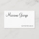 Carte de visite moderne avec un design simple avec votre nom dans un élégant script noir dans le coin supérieur gauche et votre titre dans le coin inférieur droit, sur un arrière - plan blanc. L'arrière contient vos coordonnées. Un design simple et minimaliste qui conviendra à de nombreuses professions, dont un photographe, un agent immobilier, un décorateur d'intérieur et plus encore.