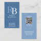 Carte De Visite Simple Monogram QR Code Blue | Connect with Me