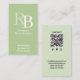 Carte De Visite Simple Monogram QR Code Green | Connect with Me