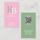 Carte De Visite Simple Monogram QR Code Pink | Connect with Me