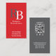Carte De Visite Simple Monogram QR Code Red | Connect with Me