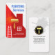 Cover features a red shaded rooftop building design that is about to be painted over. Over at the top is the business name "PAINTING Services" which you can change with the contact details near the base of the card.