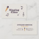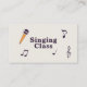 A business card for singing class with illustrations of a microphone, treble clef and music notes on a siege background. The back comes with fully customizable contact information decorated by icons. Ideal for music lessons, singing teachers, vocal coaches, musicians, and more.
