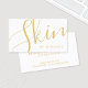 Professional Modern Elegant Gold and White Skincare Specialist Carte de visite avec mot "skin" en calligraphie moderne style de police à l'avant et détails en style de police sans serif moderne à l'arrière. Parfait pour les spécialistes des soins de la peau, esthéticiens, spas et de nombreuses autres professions. Remarque : Les détails du papier sont simulés dans l'illustration. Il n'y aura pas de métal sur ce produit.