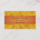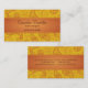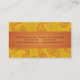 Un regard exotique qui éclairera vers le haut de n'importe quelle occasion de mise en réseau. Paisley orange conçoit contre le jaune d'or composent l'arrière - plan de ce carte de visite. L'information de contact imprime contre une bande orange riche sur l'avant et le dos. Un somptueux recherchent le textile ou les dessinateurs d'intérieurs, les coordonnateurs d'événement ou les magasins de détail. Disponible dans des couleurs alternatives avec les produits assortis.