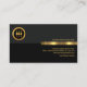 Un logo or de l'égaliseur de son, est en haut suivi d'une légende de slogan juste au-dessus de la bande d'or. Sous la bande d'or se trouvent votre nom prestigieux, votre titre de poste et les coordonnées. L'URL de l'entreprise se trouve dans la direction opposée au mur de droite.