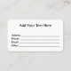 Carte de visite, taille : États-Unis : 8,9 cm x 5,1 cm, papier : Signature Matte, coins : Arrondis