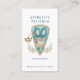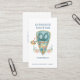 Une couturière fantaisie illustrant le bleu et le rose du carte de visite blanc avec ciseaux illustrés dans un support coque avec typographie incurvée et floral. Style artistique unique au format carré.