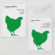 Modèle de carte de visite avec un symbole de poulet (Hen). Nom de l'entreprise, type d'entreprise et adresse sur le devant avec nom, titre de l'emploi, téléphonie, adresses web et e-mail sur le dos, avec la même disposition.