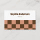 Donnez à votre marque un côté audacieux et sophistiqué avec ce carte de visite rétro minimal. Le motif en damier marron et rose poussiéreux ajoute une touche de style, tandis que la disposition propre assure que vos coordonnées se démarquent. Idéal pour les designers, les stylistes, les propriétaires de boutique et les créatifs qui aiment l'esthétique d'inspiration vintage avec une touche moderne. Entièrement personnalisable avec votre nom, titre, poignées sociales et code QR pour faciliter la mise en réseau.