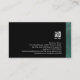 Ce remarquable carte de visite professionnel de manager de talent dispose d'un élégant dégradé de gris turquoise abstrait sur la bordure inférieure. Votre nom et votre titre apparaissent juste au-dessus de cette bordure à motifs, sur un arrière - plan noir jet. Le même thème à motifs apparaît au dos de la carte, sauf que la bande est sur la bordure droite. Le logo et les coordonnées de votre entreprise apparaissent dans la section noire de la carte. Ce design carte de visite fait une première impression frappante et est parfait pour les grands impacts, l'édition, l'impression, la littérature, les arts littéraires, l'écriture, les compétences artistiques, les thèmes professionnels abstraits.