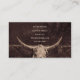 Ces cartes de visite rustiques de l'Ouest présentent une texture de crâne de vache de cowboy à la texture ancienne grunge de pays avec un vieux brun style de grange antique d'inspiration sauvage de l'Ouest. Cool, tendance, animal de ferme moderne. Copyright de l'image Marg Seregelyi Photography.