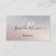 La 'Carte de visite professionnelle de spécialiste en beauté des ongles à paillettes argentées Girly' présente une texture de paillettes argentées fausses, donnant à la carte une apparence scintillante et accrocheuse sans utiliser de véritable paillette. Cet effet crée l'illusion d'un luxe scintillant tout en restant propre, facile à imprimer et pratique. La texture pailletée ajoute de la profondeur et du glamour, représentant parfaitement la créativité et l'art associés aux professionnels de la beauté. Une touche de couleur pêche et rose ajoute de la beauté, de la féminité, du charme et de l'élégance. Pour les professionnels travaillant dans l'industrie des soins de la peau, des ongles et des cosmétiques, cette couleur résonne instantanément avec les clients à la recherche de traitements de beauté de luxe et d'expériences de soins personnels. Le texte utilise une typographie moderne et est entièrement personnal