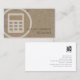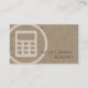 Ce carte de visite comptable présente une grande icône blanche translucide en gras d'une calculatrice. L'arrière - plan est une texture de papier marron clair naturel, avec votre nom et titre apparaissant sur le côté inférieur droit de la carte. Le design global est minimaliste, parfait pour l'administration, la comptabilité, la finance, le marketing, les thèmes professionnels.
