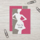 Voici un modèle ultra moderne de carte de visite de mode comprenant un format vertical sur l'avant dans la belle combinaison de couleurs rose, blanche, et de coquille d'oeuf avec le mannequin. Le revers contient votre information d'affaires avec des modèles de contact. Conçu pour un mannequin, un magasin d'habits, ou des modes de dames.