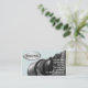 Carte de visite de photographe avec la photo d'une personne tenant un appareil-photo de SLR de zoom avec l'emblème avec votre nom là-dessus. Conçu pour des photographes impliqués en vidéographie, épousant la photographie, ou les portraits.