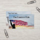 Célébrez la liberté américaine avec ces cartes de visite qui mettent en vedette un drapeau américain agitant au vent contre un coucher de soleil au crépuscule. Conçu pour l'expression du patriotisme, de la liberté, de l'expression politique ou des clubs qui s'adressent aux Patriotes.