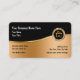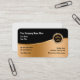 Modèle de carte de visite de design immobilier classique en or noir, et blanc. Conçu avec un emblème de maison haut de gamme et un arrière - plan de couleur or présenté sur un stock carte de visite d'angle arrondi. Créé pour Realtor, Broker, société de titre ou agence immobilière.