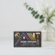 Une couche de bois noir est accentuée par une conception créative de toit en or avec un marteau en or, une brosse à rouleaux et une échelle autour. Près de la base, vous avez votre nom prestigieux et vos coordonnées. Au-dessus, dans une couverture gris foncé, se trouve un logo doré pour outils ménagers que vous pouvez utiliser. Ceci est suivi par votre nom prestigieux, les coordonnées et une légende de slogan pour faire connaître vos services. Un design idéal pour les bricoleurs et les entreprises de construction.