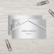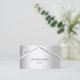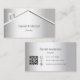 Un faux arrière - plan à l'aspect argent avec une maison/toit abstrait à l'aspect argenté. Personnalisez et ajoutez votre nom et votre texte à l'avant. Retour : Modèles pour votre nom, titre, numéro de téléphone, adresse postale et de site, QR-code à votre site Web ou compte de médias sociaux.