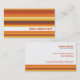 Les rayures oranges et jaunes tonales avec votre nom de la société imprimé entre fait une frappe pour rechercher un carte de visite unique. Les rayures sont répétées sur de nouveau à la compensation votre information d'affaires. Une carte souple qui peut fonctionner pour des services aux entreprises, des sociétés de technologie de l'information, le marketing et des entreprises de communications, agences de publicité… la liste est sans fin. Disponible dans des couleurs alternatives avec les produits assortis.