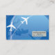 Carte de visite élégant avec avions blancs autour du globe bleu. Parfait pour l'agence de voyage, l'entreprise de tourisme et guide touristique. Facile à customiser avec vos informations.
