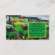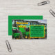 Ce cool tracteur vert carte de visite aux accents jaunes présente une photo d'une rangée de tracteurs verts sur une ferme californienne. Ajoutez vos détails personnalisés pour faire de ce design votre propre !