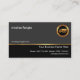 Une carte professionnelle avec une ligne de démarcation en or séparant la colonne grise du noir. Dans le coin supérieur gauche se trouve l'option de service "camion à louer" que vous pouvez changer pour convenir à votre entreprise. Dans la direction opposée, il y a le camion d'or que vous pouvez utiliser. Dans la colonne noire, il y a votre nom prestigieux et le titre de votre emploi avec les coordonnées à sa droite.