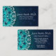 Carte De Visite Turquoise, Bleu Et Blanc Fleurs Mandala