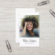 Cartes de visite de photographie moderne et professionnel avec votre photo dans un cadre blanc simple avec typographie de script minimaliste tendance. Ajoutez vos coordonnées à l'arrière. Ce design élégant comprend trois icônes de médias sociaux et un champ pour votre nom d'utilisateur.