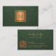 Elegant classy luxury upscale looking monogrammed business card in faux emerald green leather look (PRINTED) with a faux gold copper brushed metallic square (also PRINTED). ++++++++++++++ Easy to personalize on both sides with your details and your QR CODE (automatically generated with your website's or social media URL link)! ++++++++++++ Suitable for consultants, personal stylists, makeup artist, hairstylist, salon manager, home interior designers or architects, boutique owners, lifestyle bloggers, artists, luxury services business professional providers.
