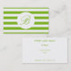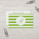 Les rayures vertes et blanches du printemps composent les rayures arrière - plans avec un cercle blanc en haut à gauche. Lettre Monogramme blanche en cercle. Texte en vert - prêt à être customisé