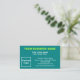 Carte de visite que vous pouvez customiser pour vos clients ou clients de trouver facilement votre adresse professionnelle et les coordonnées de votre contact. Les couleurs et le style sont des textes blancs et jaunes-verts sur arrière - plan vert turquoise et les textes centrés de votre nom d'entreprise, votre nom et votre titre. Pour customiser ce carte de visite, téléchargez votre logo d'entreprise, tapez votre nom d'entreprise, votre nom, votre titre, votre adresse, votre numéro de téléphone, votre courriel et votre site Web ou votre page de médias sociaux professionnels. Après avoir téléchargé le logo et tapé des textes, veuillez vérifier l'apparence sur les côtés avant et arrière. Si l'apparence vous plaît, vous pouvez passer votre commande maintenant. Si vous avez besoin de redimensionner et déplacer le logo et les textes pour s'adapter à ce carte de visite, s'il vous plaît changer dans l'outil de conception. Vous pouvez également effectuer d'autres modifications dans l'outil de conception en fonction de l'apparence de ce carte de visite que vous préférez, comme changer la couleur arrière - plan, la couleur de police et le style de police.