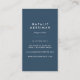 Les élégants cartes de visite verticaux ont une bordure ronde de feuillage bleu aquarelle entourant deux champs de texte personnalisés pour votre nom et nom d'entreprise ou profession. Ajoutez vos coordonnées à l'envers en blanc sur un arrière - plan bleu port riche