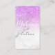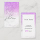 Carte de visite vertical de parties scintillantes de maquilleur pourpre élégant moderne élégant à la mode de marbre avec les icônes sociales ! (Facebook, Instagram, gazouillement)