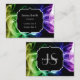 Personnalisez et customisez un carte de visite artistique élégant avec vos informations initiales, nom et entreprise. Cool et belle photo fumée de fumée colorée en jaune, bleu, vert, violet et violet sur le noir.