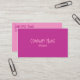 Cartes de visite personnalisés violet rouge avec police rose sur le devant, et le contraire sur le dos.